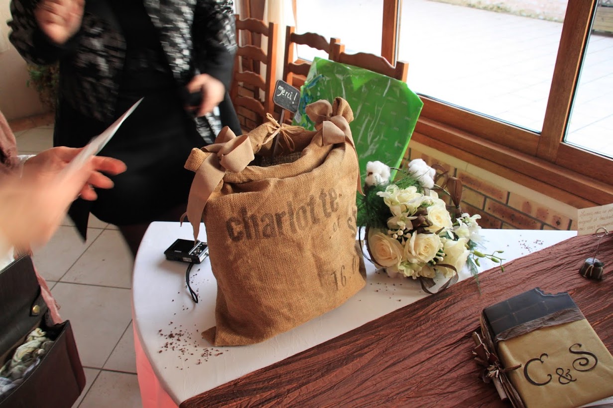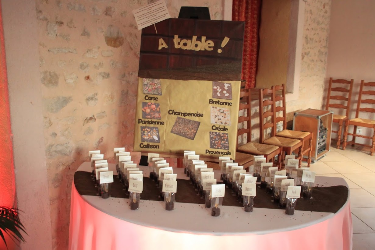 Notre plan de table et ses touillettes en choco assorties..en guise marque place