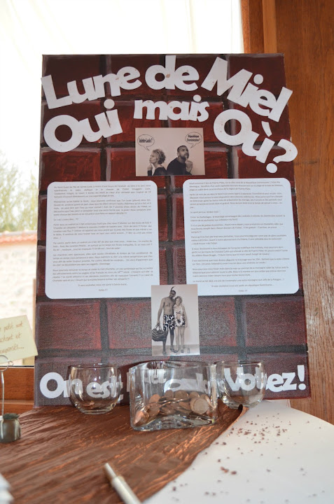 Notre urne de mariage, le tableau de vote pour la lune de miel et le livre d'or..