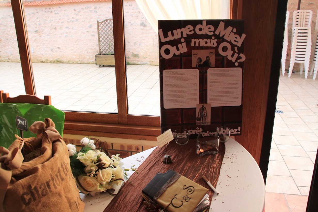 Notre urne de mariage, le tableau de vote pour la lune de miel et le livre d'or..
